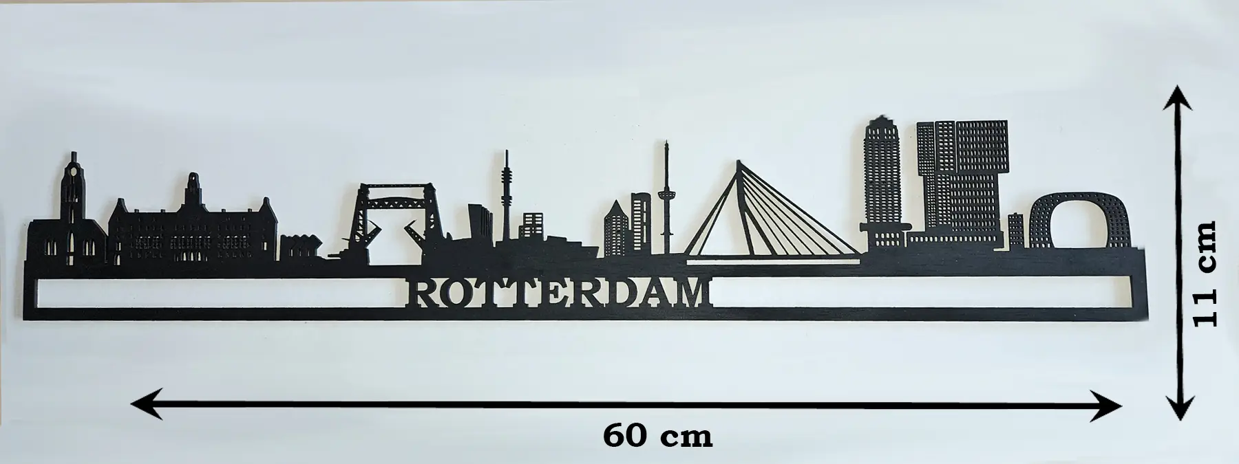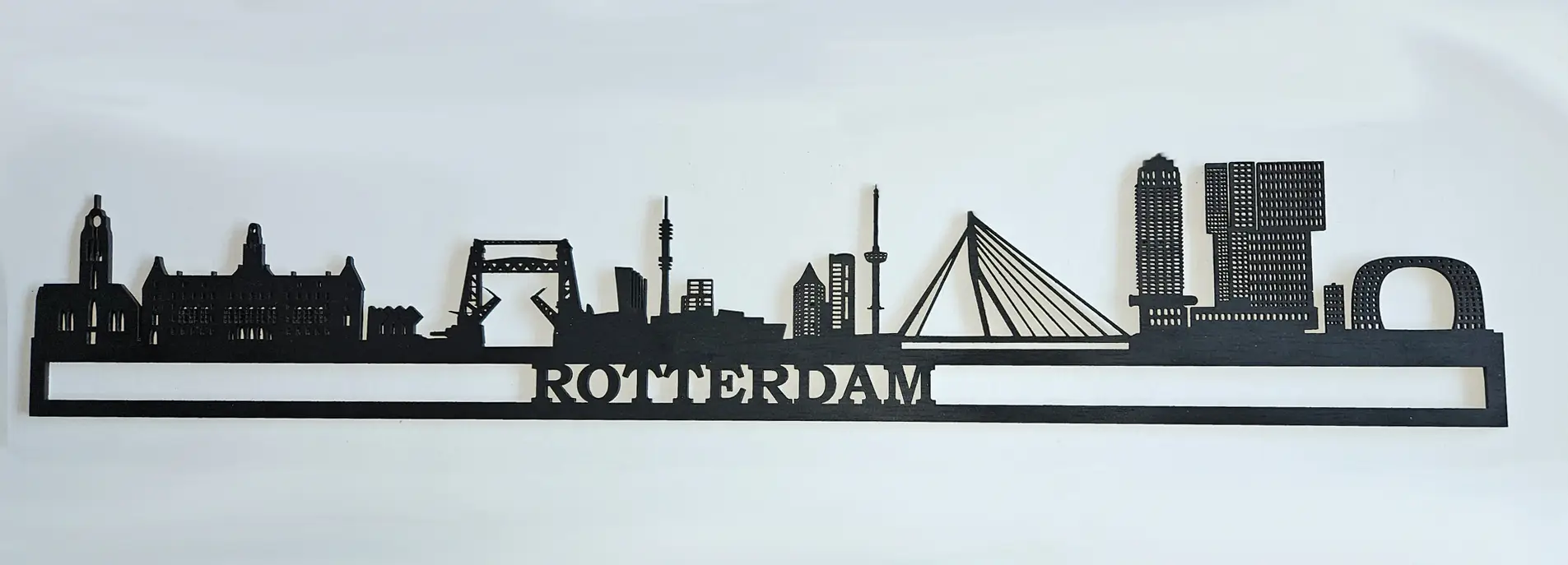 De skyline is voldoende stevig om tegen de muur te hangen of op een plank te plaatsen. De standaard dikte is 3mm, maar dikker is natuurlijk mogelijk.